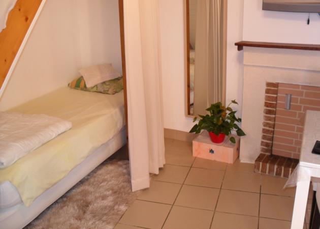 Un espace nuit pour 1 personne. Une salle de douche avec WC. Un mini dressing.