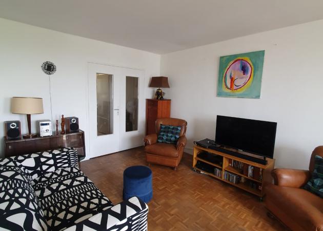 Dans immeuble de 4 étages, petite résidence calme et arborée de 4 immeubles avec interphone et Gardien.