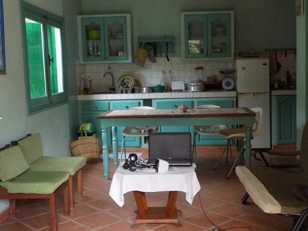 Vous pourrez préparer de délicieuses recettes dans la cuisine bien équipée avec four, puis les déguster autour de la table à manger prévue pour 4 convives ou bien dehors, sur la terrasse ou dans le jardin arboré et fleuri, en profitant de la vue sur la mer 1er plan.