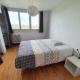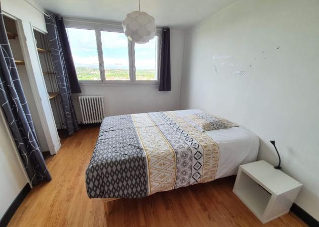 - Une chambre claire sans vis-a-vis équipée d’un lit double, bureau, penderie et Wifi,