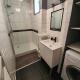 - Une salle d’eau fonctionnelle avec colonne de douche, vasque et lave-linge