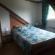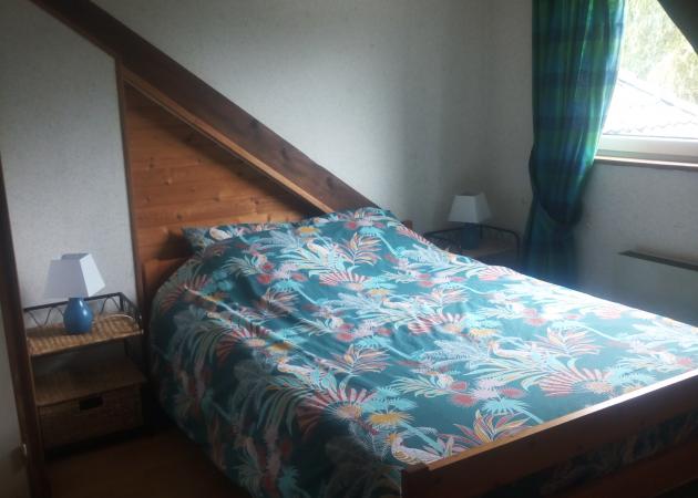 Chambre avec lit de 140, bureau, penderie et étagère.