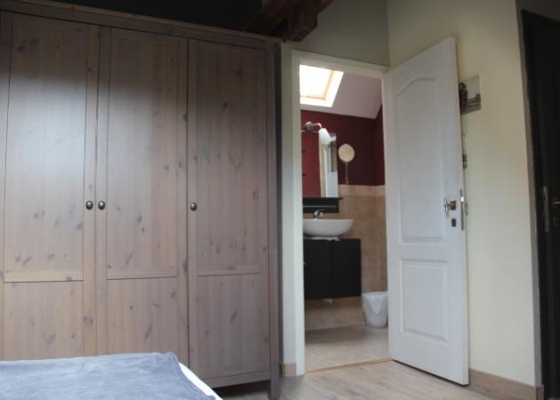 La chambre a une salle de bain privée. WiFi inclus. Au rez-de-chaussée, il y a un salon, une salle a manger et cuisine équipée pour les hôtes.