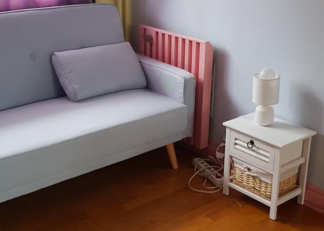 La chambre est meublée d'une armoire, commode, canapé lit .