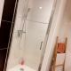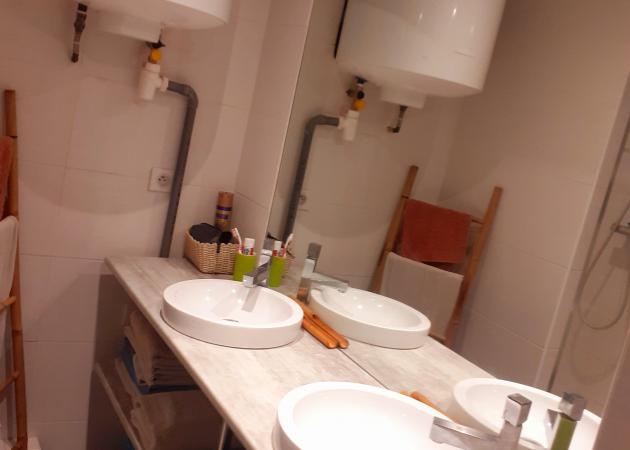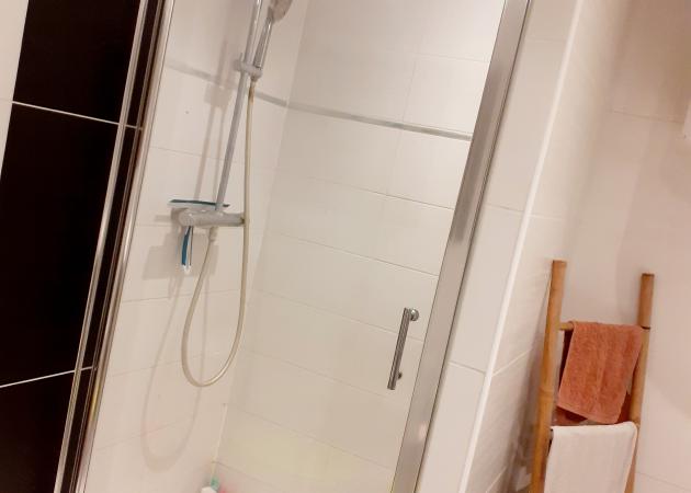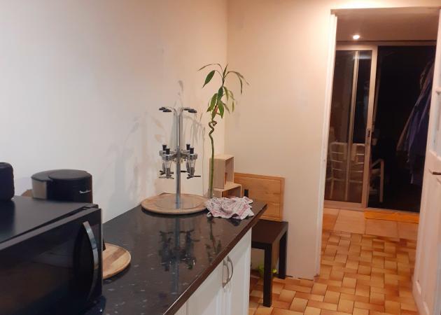 Terrasse, salon salle a manger, cuisine, salle de bain en commun avec moi meme.