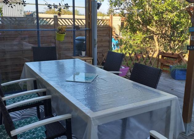 jardin ,terrasse, 2 chambres à louer, salle de bain partagée et cuisine partagée.