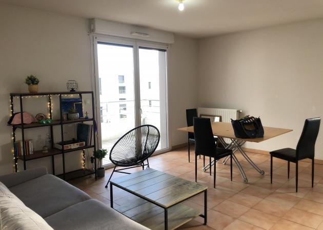 Il s’agit d’un T3 de 59m2 situé à montaudran. Il est au 4ème étage avec ascenseur et une terrasse de 11m2. Il comporte 2 chambres, salle de bain et toilette séparés.