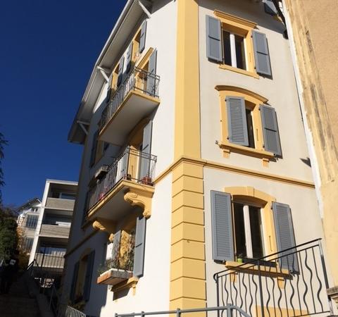 Il est situé à deux pas de la rue de la côte et à 10 minutes à pied du centre-ville. L'appartement est de 2,5 pièces ; une grande cuisine salon, et une chambre à coucher et une grande pièce bureau ainsi qu'une salle de bain avec baignoire et douche. L'appartement se situe au 3eme et dernier étage d'un petit immeuble de 5 appartements sans asenceur. l'appartement est lumineux et a du charme. Il et est situé sous les toits avec des fenêtres dans chaque pièce et des velux. La buanderie est au sous sol. J'attends les appels pour vos visites!