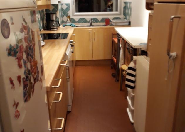 Cette chambre de 11 m² + salle de bain personnelle (4m²) pour 1 personne non-fumeuse, ou Pro basée en province et ayant des nuitées récurrentes à Paris pour travail en présentiel non-fumeur comprend 1 lit double, 1 table, tapis, rangement, grande fenêtre, dont les équipements sont à partager, cuisine et WC. Cuisine équipée (cuisinière, frigo, congélateur, lave-vaisselle, lave-linge, micro-ondes, bouilloire électrique, cafetière électrique).