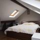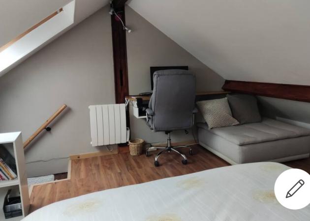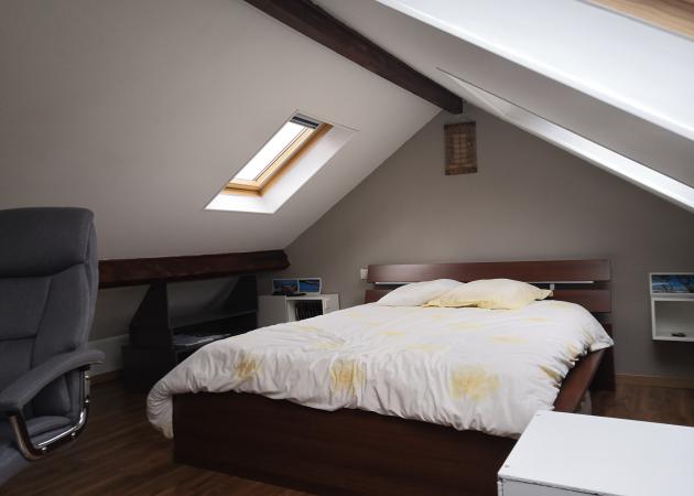 La Première chambre fait 19 M2 au sol, est située sous les toits avec un grand lit 160x200, coin bureau, fauteuil.
