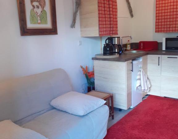 ...kitchenette complète PRIVATIVE, terrasse accessible de votre porte d'entrée.