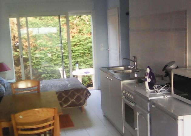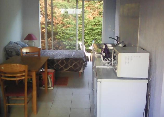 Studio indépendant avec grandes baies vitrées très clair.
