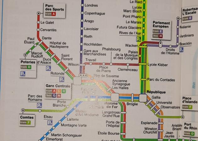 Acces centre de Strasbourg via tram ou bus ou piste cyclable le long du canal . .