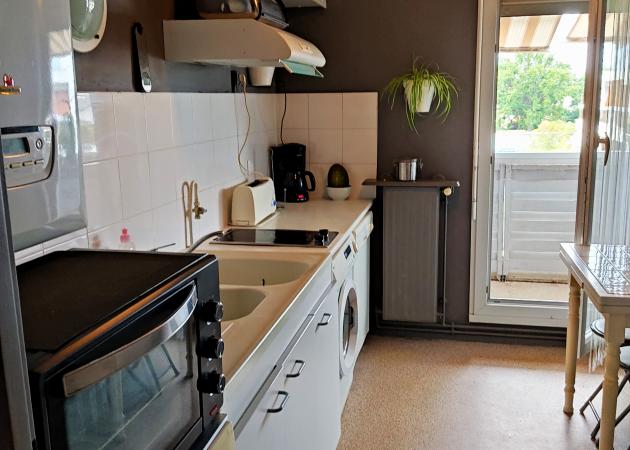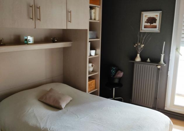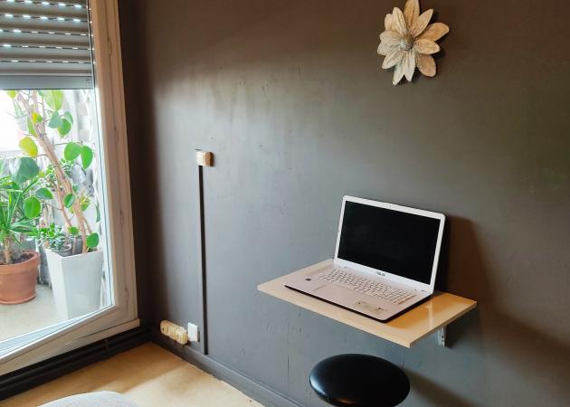 Une chambre calme 11 m2 dans petite résidence avec balcon armoire/penderie petit bureau et Wifi.