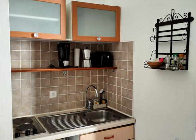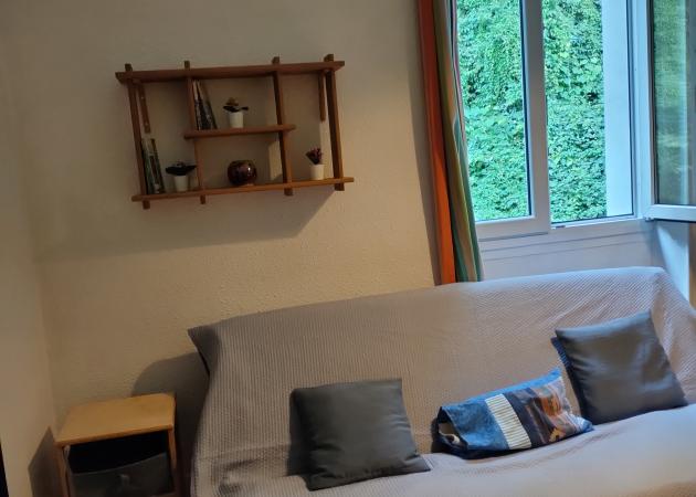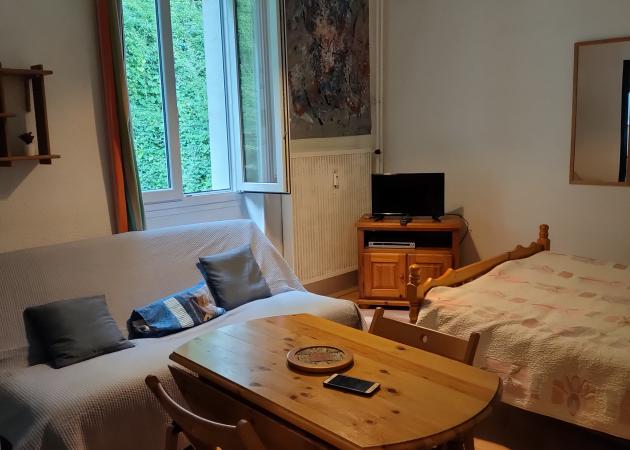 Le studio de 24 mètres carrés se situe du côté du Rocher, il est donc très calme et pas trop chaud l'été. Il est équipé d'un lit en 140 et d'un clic-clac il permet de recevoir 3 voire 4 personnes. La petite cuisinette est bien équipée ainsi que la salle de bain qui comprend une douche. Ce studio est principalement loué pour les curistes, par période de 3 semaines mais peut-être loué en intersaison, de décembre à fin février à la semaine. Les serviettes de bain et le linge de lit est fourni moyennant un supplément.