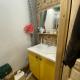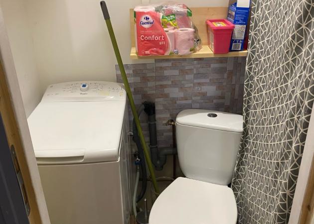 Le studio bénéficie l'accès à un espace partagé avec une autre étudiante, calme et studieuse. Cet espace commun comprend une salle de bain avec douche et rangements privatifs, une entrée commune dotée de meubles de rangement (cintres, etc.), ainsi que des toilettes séparées équipées d'un lave-linge .