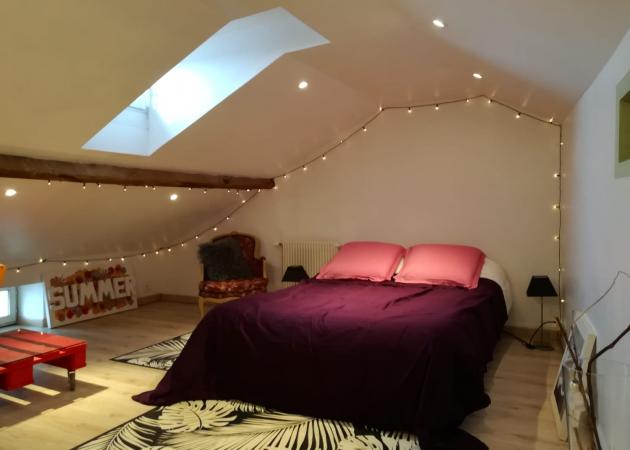Chambre comble R+2 sous rampant, avec lit en 140.