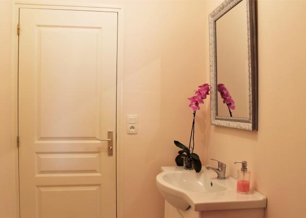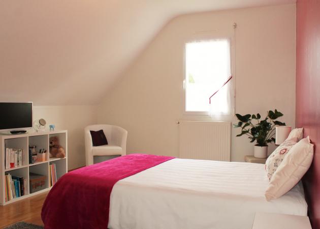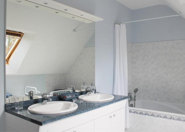 Il y a deux chambres à l’étage (avec salle de bain et wc communs) et une chambre au rez-de-chaussée (avec salle d'eau et wc privatifs).