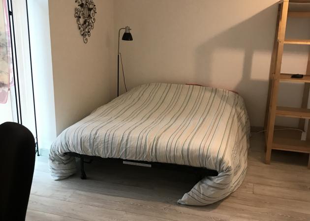 Chambre de 11m2, au rdc, vue sur le jardin , un peu en retrait du reste de la maison, comprenant un lit 2 places qui peut se replier en canapé, un tres grand bureau, une penderie et une etagere.
