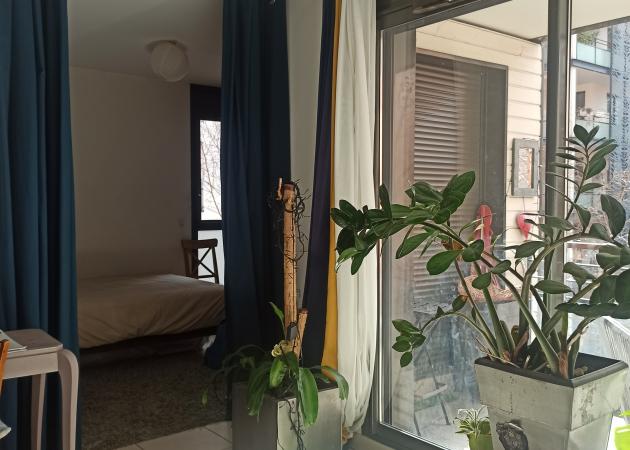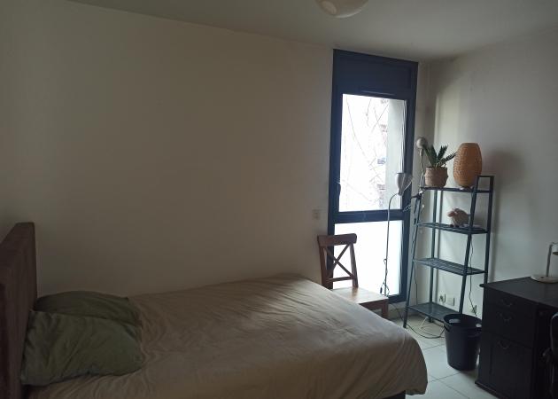 Je dispose d'une chambre de libre avec un lit double, un bureau et un balcon.