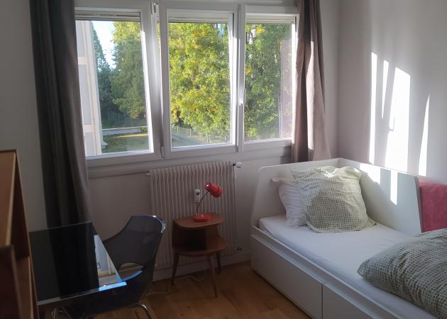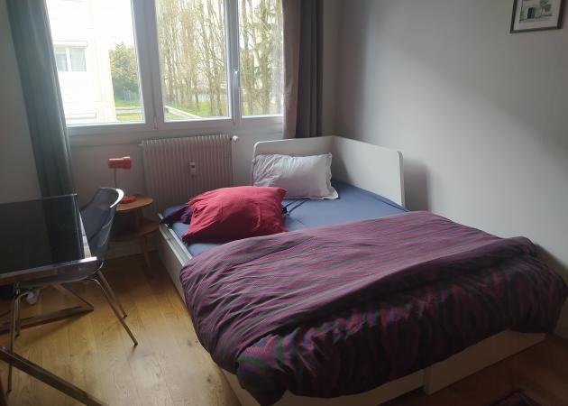 Propose chambre en semaine, à l'année universitaire après période d'essai : superficie environ 15 m2 dans appartement 63 m2 ; bureau, fauteuil et armoire ; chambre orientée sud, très lumineuse ; salle de bains et cuisine à disposition avec lave-vaisselle et si nécessaire lave-linge (participation 3 € par machine).