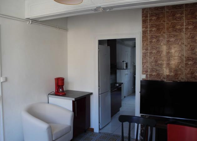 Pièce commune: Salle de bain, WC, salon, cuisine et terrasse.