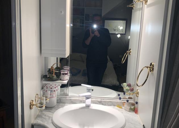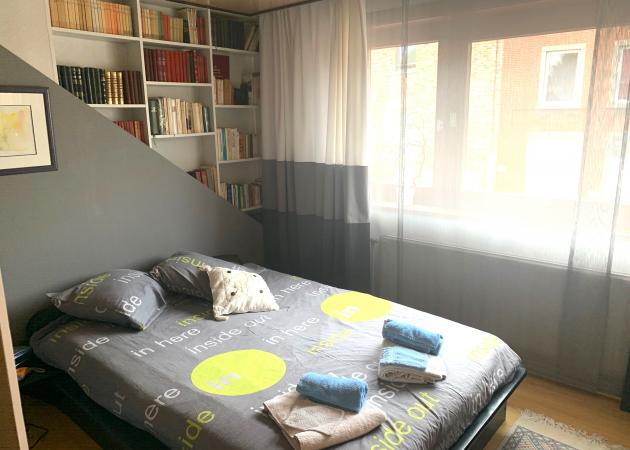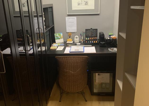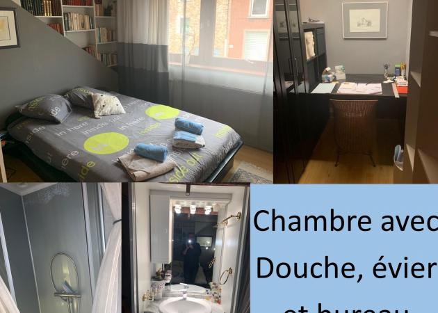 Chambre bien aménagée dans une maison familiale chez l'habitant, avec un grand lit double et un bureau de travail. La douche et le lavabo (privés et dans la chambre). La chambre est équipée d'une télévision, d'un minibar, d'une machine Nespresso. Les toilettes sont communes (lingettes et produits désinfectants à disposition)