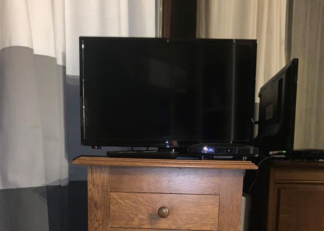 Cette chambre possède également une télévision, une machine à café, un mini bar et une connexion Wi-Fi.