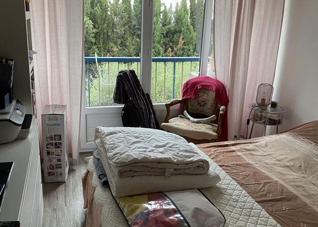 chambre de 12 m2, très claire, donnant sur la piscine, place de parking, wifi, fibre, accès télévision, cuisine, salle de bain,