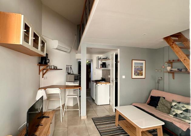 Vous pouvez travailler paisiblement dans le calme tout en profitant du cœur de Perpignan « la catalane » dans un logement cozy à 10 minutes à pied du centre historique mais aussi de la gare. Climatisé et indépendant ce petit f1 bis lumineux de 20 m² a de plus un coin nuit indépendant en mezzanine. Il est entièrement rénové, bien équipé. Son espace de vie avec une table pour étudier et ou manger, ouvrant sur un coin repas extérieur, vous offre en plus la possibilité d'accueillir ponctuellement grâce à son canapé clic clac BZ. Sa situation idéale le place à proximité immédiate des bus et de nombreux petits commerces boulangerie, traiteur, pharmacie, laverie automatique..Son emplacement vous permettra d'accéder en vingt minutes à la mer et en 30 minutes en Espagne par voiture ou bus. Étant votre voisine directe, je serais heureuse de vous accueillir pour le temps de votre séjour.Nous partageons notre exterieur séparé par une palissade.