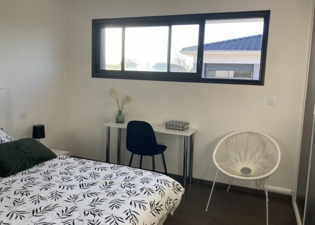 La chambre est spacieuse et lumineuse , lit 160 , grands placards , wifi , télévision ,salle de bain privée . Petit déjeuner compris , accès lave linge et sèche linge 1 fois par semaine ; fumeur autorisé uniquement sur terrasse ou jardin.