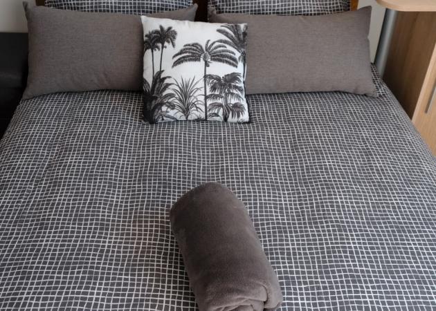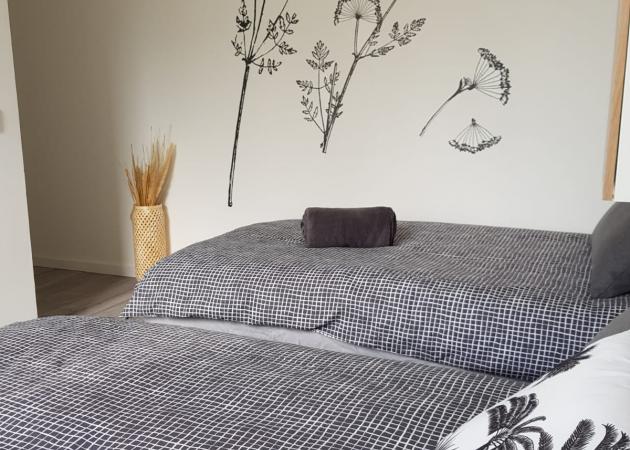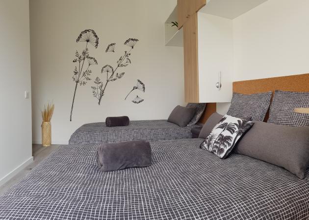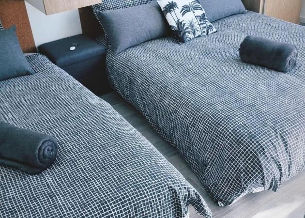 + lit double de 140x190 (sommier matelassé + sur-matelas en mousse à mémoire de forme),