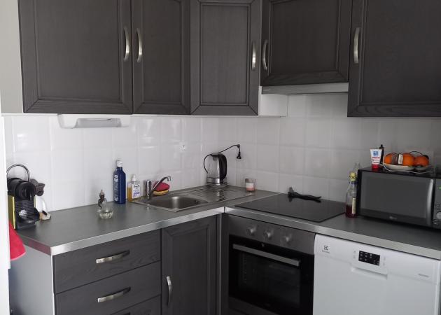1 cuisine équipée ouverte (four, four micro-onde, Frigo) 1 pièce à vivre 35m2 salon et salle à manger.