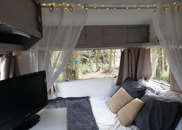 La caravane est équipé d une tv,d une bouilloire et d un frigo.