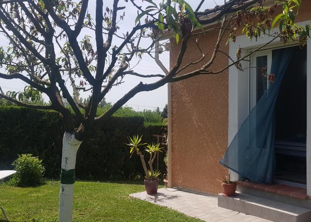 Accès sécurisé portail électrique avec boîte à clé en cas d'absence. TV, frigo, table et 2 chaises pliantes.