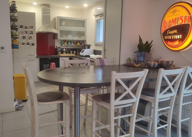La maison est très confortable et nous partageons tous les espaces, je dispose de ma chambre et de ma salle de bains au rez de chaussée.