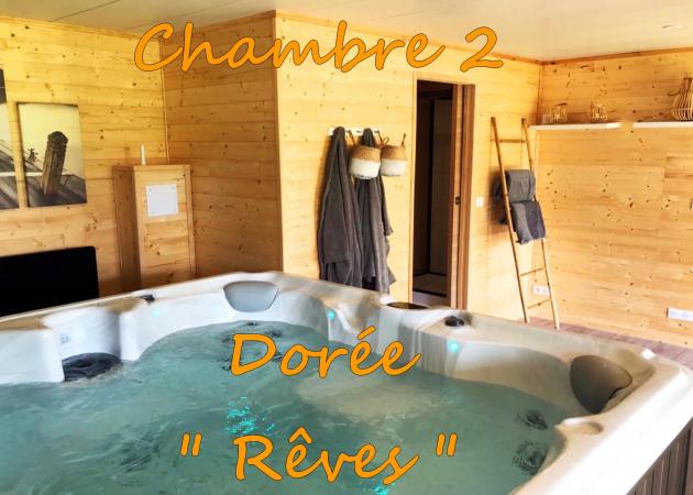 ° La chambre des REVES (N°2, dorée) : avec 1 lit en 140 cm et balcon sur le jardin