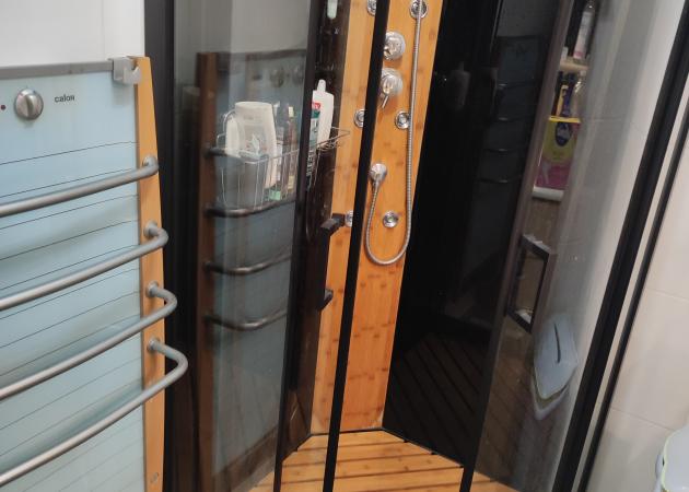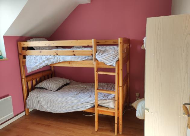 2 chambres (1 lit double et deux lits superposés), wc avec lave mains, salle de douche