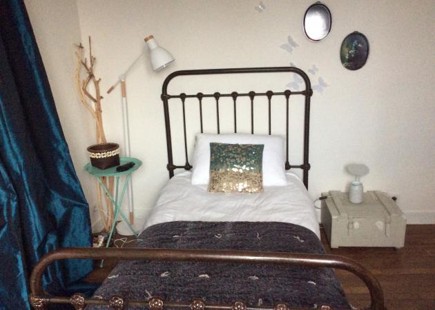 Une chambre chez l’habitant de 14 m2 désignée « chambre bleue », au premier étage de la maison , comprenant :