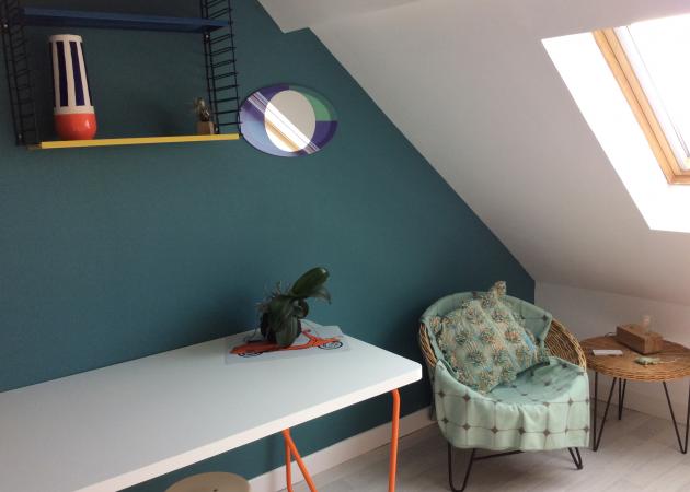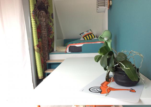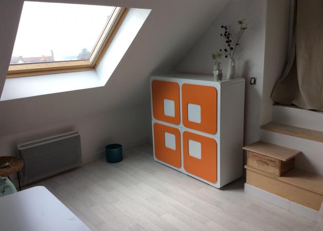 Cette jolie chambre de 14 m2 plein sud avec vue sur le jardin et sur [Coordonnées masquées] est au 4ème étage de la maison.