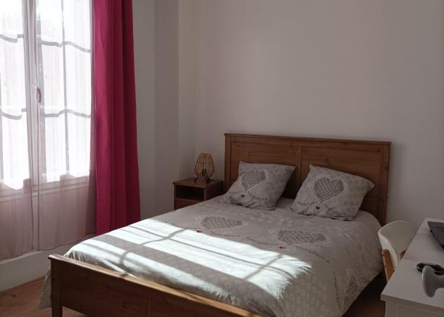 Chambre avec 1 lit 2 places, chevet, armoire et bureau, dans une maison et tout son confort. pour séjour tourisme ou déplacement professionnel ou stage.