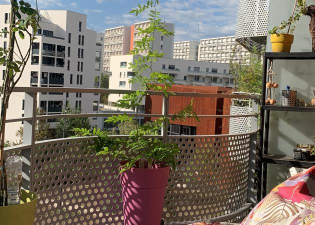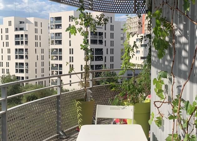 La chambre se situe à l'est et au calme avec un balcon végétalisé.