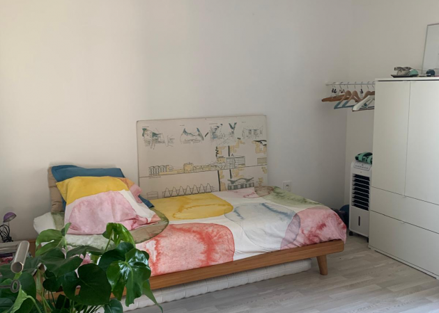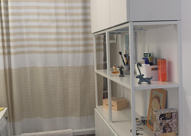 La chambre est meublée d’un lit 90x200, un bureau, une bibliothèque et une penderie.