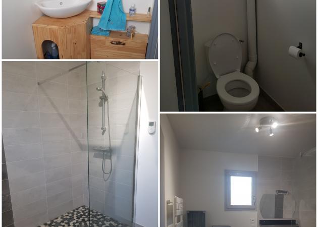Salle de bain équipée avec rangements, spacieuse et sans vis-à-vis.