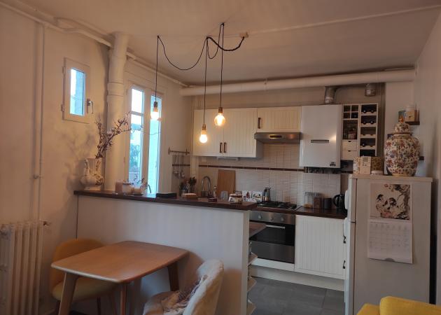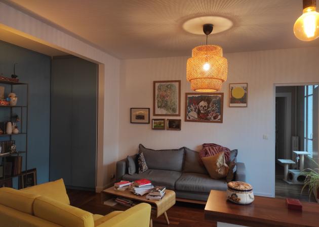 Jouissance du salon et de la cuisine. Lorsque je suis là, je dors dans le salon, sur le canapé.