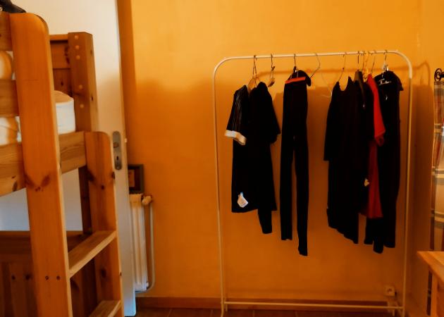 Nous proposons l'hébergement dans une une chambre équipée de deux lits superposés, d’une commode et d’une penderie, avec une petite fenêtre donnant sur l’extérieur.