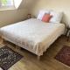 La chambre est meublée (lit, chevet, bureau, chaise, dressing).