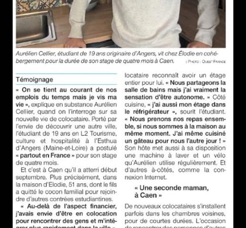 Je m'appelle Elodie. Mon fils vit et travaille à Tours. Il revient de temps en temps à Caen.