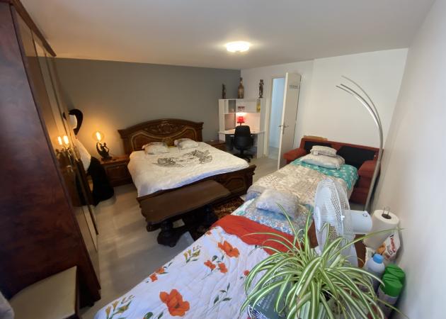 Profitez d’une chambre spacieuse, qui offre 2 couchages a 4 couchages max en supplément, un lit double et un canapé lit simple, et un lit appoint, environ 20m2.