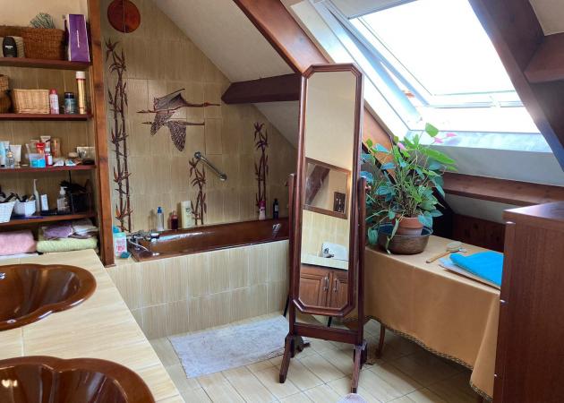 Accès cuisine équipée, jardin, buanderie et salle de bain (baignoire ou douche).